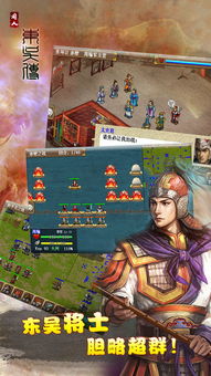 游戏画面精美细腻,音乐激昂动人,让人仿佛置身于那个战火纷飞的时代。游戏中,你可以体验到三国时期的历史事件,感受东吴文臣武将的风采,体验三国时代的策略与决战。