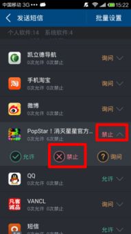 - 禁止短信发送:在这里,你可以看到手机上所有可以发送短信的软件应用。找到那些偷偷发送短信的游戏,点击禁止短信发送”即可。